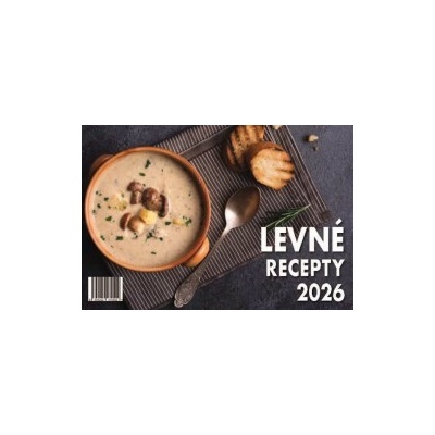 Stolní kalendář na rok 2026 s týdenním kalendáriem a fotografiemi s levnými recepty.