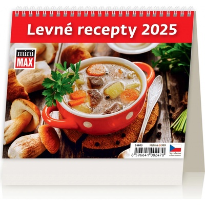 Kalendář MiniMax Levné recepty 2025 Vlastnosti kalendáře: Formát kalendáře: 17,1 x 13,9 cm Kalendárium: české týdenní řádkové Počet stran kalendáře: 56 + 2 Stojánek: se...