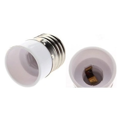 Redukce patice žárovky z E14 na E27. Redukce E14 / E27 umožňuje používat žárovku E27 (např. LED žárovku) uvnitř objímky žárovky E14. Napětí: 230V Příkon max: 40W