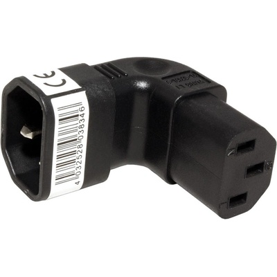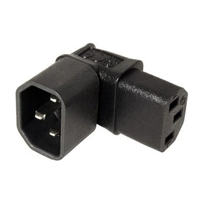 Úhlová redukce napájecího kabelu.; Použití: Pro vyvedení napájecího kabelu ze zařízení dolů.; Konektory: IEC320/C14 - IEC320/C13 lomená; Maximální proud: 10A; Barva: černá; Rozměry: 45 x 38 x 29mm; Druh obalu: PE sáček s eurovýsekem; Hmotnost výrobku: 35g;