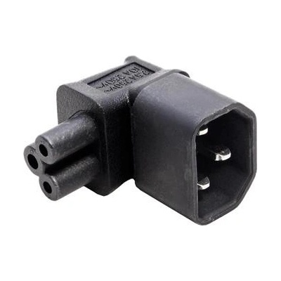Úhlová redukce napájecího kabelu.; Použití: Pro vyvedení napájecího kabelu ze zařízení dolů.; Konektory: IEC320/C14 - IEC320/C5 lomená; Maximální proud: 10A; Barva: černá; Rozměry: 40 x 38 x 28mm; Druh obalu: PE sáček s eurovýsekem; Hmotnost výrobku: 25g;