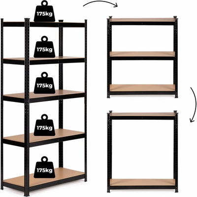 Robustní a univerzální kovový regál pro vaši garáž, dílnu nebo sklep. S pěti výškově nastavitelnými poličkami a celkovou nosností 875 kg poskytuje dostatek prostoru pro uložení...