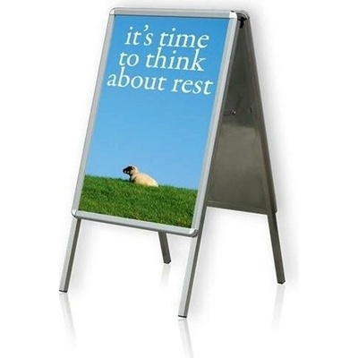 Reklamní stojan oboustranný typu áčko pro plakáty formátu A1, oblé rohy. Reklamní poutače se zaklapávacími lištami - clip rámy (klaprámy) patří mezi nejoblíbenější. A stojany s...