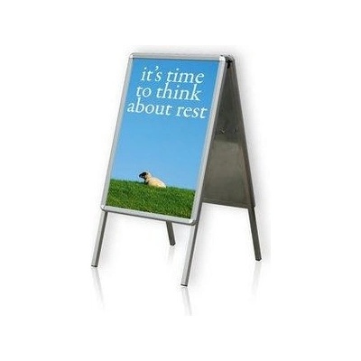 Reklamní áčko pro prezentaci reklamních plakátů nebo fotografií. Přední strana je krytá antireflexní UV fólií. Jednoduchá výměna plakátů odklopením bočních hliníkových profilů....