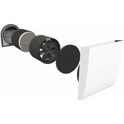 Skříňje vyrobena z odolného tvrzeného plastu. Venkovní subtilní sdružená fasádní mřížka je bílé matné barvy. Část jednotky obsahující výměník tepla umožňuje instalaci do zdi o...