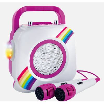Veselý karaoke reproduktor s LED osvětlením a funkcí ozvěny. Reproduktor je připraven k použití ihned po vytažení z krabice. Stačí vybrat oblíbenou skladbu a začít...