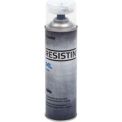 Proxim Resistin ML sprej do dutin 500 ml Používá se ke konzervaci kovových součástí i v nejtěžších klimatických podmínkách, k ochraně dutin a větších ploch automobilů (prahy dveří, sloupky karoserie, vnitřky dveří apod.). Stříkáme do dutých prostor karoserie nebo do...