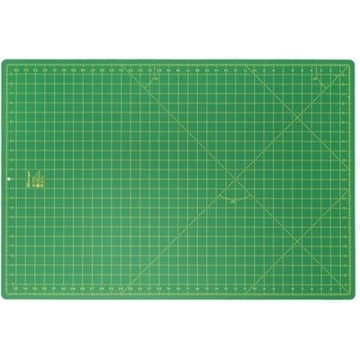 Řezací podložka zelená 90x60cm Profesionální řezací podložka pro komfortní a přesné řezání papíru, kartonu, apod. Je složená z mnoha vrstev, což zaručuje její odolnost a zacelení v místech v řezu. Na podložce jsou vykresleny milimetrové přímky a různé tvary. Rozměr...