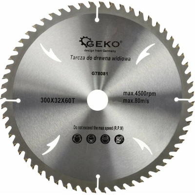 Kotouč pilový s SK plátky (vidiový), 300x32mmx60T G78081 GEKO Kotouč pilový s SK plátky (vidiový), 300x32mmx60T Pilové vidiové kotouče mají ostří osazené plátky z...