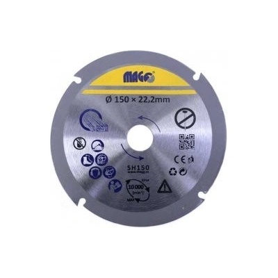 Řezný kotouč na dřevo 150mm. Upínací otvor 22mm. max 10000 RPM Tento řezný kotouč je určen pro řezání a frézování dřeva.