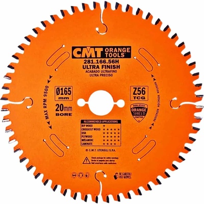 CMT Orange XTreme Pilový kotouč na lamino a DTD - ø 165x1,6/2,2x20 Z56 TFZ/TCG - Ultra čistý řez bez předřezu. Kotouč je ideální pro řezání: - Laminovaných desek -...