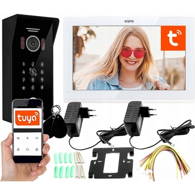 EURA VDP-99C5 VIDEODOMOFON bílý, WiFi, RFID - moderní design - externí panel s kódovým zámkem a čtečkou Mifare pro klíčenky - ovládání branky a brány - široký pozorovací úhel...
