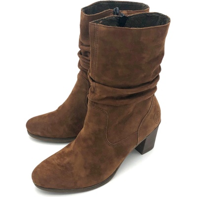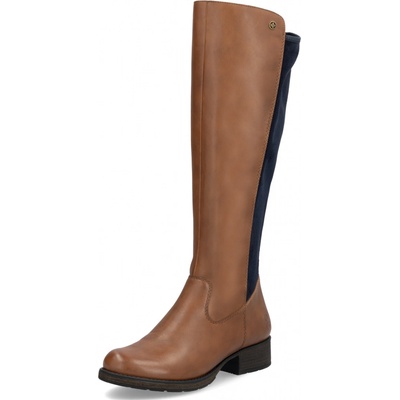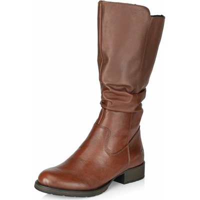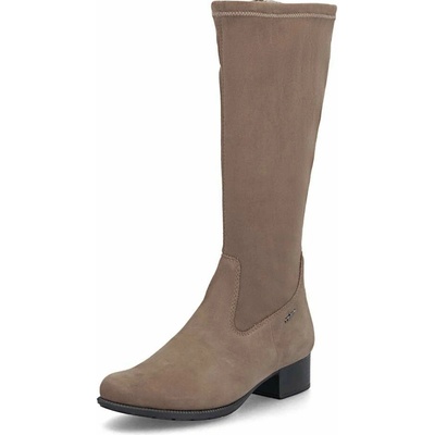 Dámské kozačky značky Rieker na pohodlném podpatku. Kombinace hladkého vzoru se stretch gumičkami na patě pro ideální přizpůsobení boty k lýtku je ideální pro každodenní...