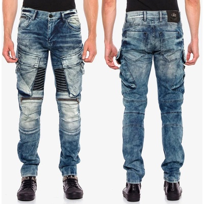 CD523 Cargo Kalhoty s volnými kapsami na nohavicích - Trendy designové džíny pro muže značky Cipo & Baxx - Elastický materiál z bavlny s příměsí elastanu - Módní nášivka z...