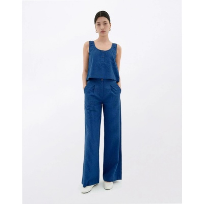 Thinking MU Cobalt Seersucker Manolity Pants - dámské kalhoty oblekového střihu z seersucker organické bavlny.