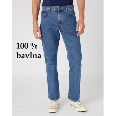 Pánské rifle WRANGLER W12105096 TEXAS VINTAGE STONEWASH Jeansy jsou ušité ze středně modré rifloviny, která na první pohled působí mírně „obnošeně“, ale nenechte se zmýlit! I...