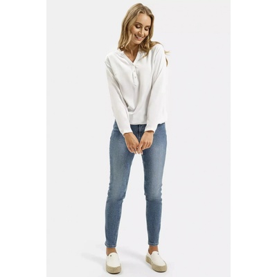 Střih s úzkými nohavicemi a středně vysokým pasem krásně zvýrazní postavu. Klasické zapínání na zip a knoflík doplňuje pět praktických kapes. Díky pružnému materiálu jsou džíny...