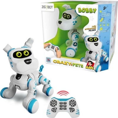 Robotický pes Zigybot Bobby, dotykové senzory, ovladač, 29 x 28 x 24 cm. Pořiďte dětem vlastního robotického mazlíčka, kterého můžou ovládat a programovat a rozhodně po něm nebudou muset uklízet nechtěná překvapení. Robotický kamarád umí spoustu věcí vydává zvuky jako...