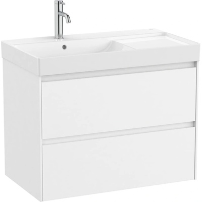 Závěsná koupelnová skříňka s keramickým umyvadlem v bílé barvě s matným povrchem o rozměru 80x64,5x46 cm. Povrch v provedení lamino. Plnovýsuv s dotahem, bez sifonu, s...
