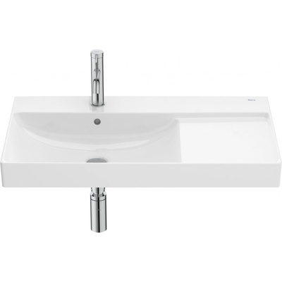Umyvadlo s otvorem pro baterii uprostřed. O rozměru 80x46x16 cm. Montážní sada je součástí balení.