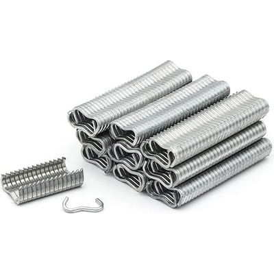 Ocelové svorky pozinkované pro připevnění pletiva k napínacímu drátu pomocí kleští LIG. Balení 1600 ks.