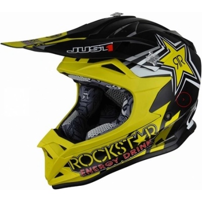 JUST1 J38 ROCKSTAR ENERGY DRINK Moto přilba Hmotnost 1320g +/- 50g, ECE 22–05 (i DOT. Vysoce kvalitní termoplastová skořepina, systém ventilace.