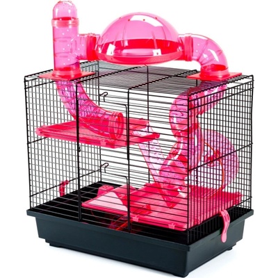 Klec pro malé hlodavce s labyrintem a kolotočem 42×28×38 cm - různé barvy příslušenství - kolotoč - domeček - terasa - miska - labyrint - velikost...