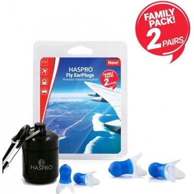 HASPRO Fly Rodinné balení S/M špunty do uší na cestování 2 x 2 ks Rodinné balení - 2 páry špuntů do uší .Špunty pomáhají zmírnit nepříjemné pocity a tlak v uších při létání...