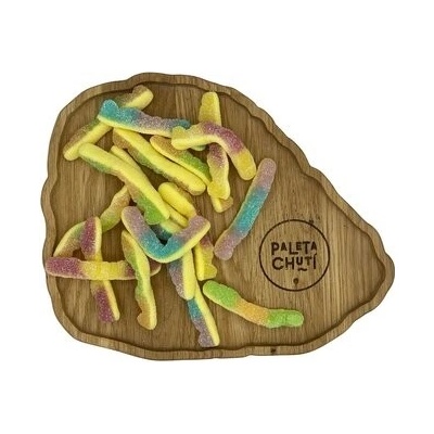 Housenky s kombinací chutí malina/třešeň, jahoda/citron, hruška/broskev. Želé s pěnou v kyselém posypu. Želé s ovocnou příchutí Složení: glukózový sirup, cukr, hroznová šťáva...