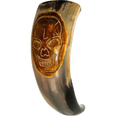 Roh na pití s vyrytou lebkou, 400-500 ml Tento roh na pití je ručně vyroben z pravého, eticky získaného volského rohu. Celkový objem rohu je přibližně 400-500 ml (tekutiny s obsahem alkoholu do 20 %). Roh nemyjte v myčce, pouze v ruce ve vlažné vodě. Roh je vhodný na...