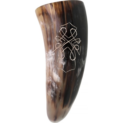 Roh na pití s rytinou Keltského kříže, 400-500 ml Symbolika Keltského kříže Keltský kříž je víc než jen ozdoba. Je to prastarý symbol s hlubokým významem. Vertikální rameno představuje duchovní svět a cestu k božskému, zatímco horizontální rameno symbolizuje svět...