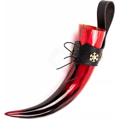 Rudý vikinský roh na pití "Rudá čarodějnice", 200 ml nebo 400 ml, s koženým závěsem Uhas žízeň jako pravý seveřan Tento roh na pití "Rudá čarodějnice" od značky Mythrojan je...