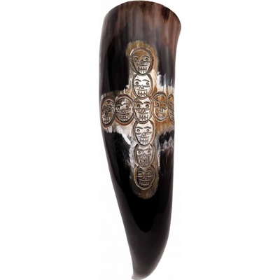 Vikingský roh na pití s ruční řezbou lebek, 500-600 ml Vzhled a provedení, které zaujme Každý roh je absolutní originál s jedinečným tvarem a barevnou kresbou. Hladce leštěný...