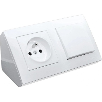 Kombinace rohová zásuvka 250V + vypínač je vhodná do kuchyně, kanceláří, školní učebny, apod. Barva lesklá bílá. Rohové zásuvky lze spojovat. KS-BOX1ZVBK-W
