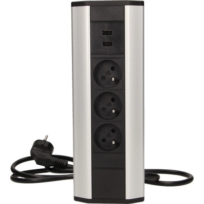 Rohová stolová zásuvka stříbrno-černá s kabelem 1,8m/ zásuvková lišta 3 zásuvky Barva: stříbrno-černá Počet el.zásuvek: 3ks Jmenovité napětí: 230V AC 50Hz Maximální výkon: 3680W Jmenovitý proud: 3x16A, 250V AC Druh kabelu /délka kabelu: H05VV-F3Gx1,5mm2 /...