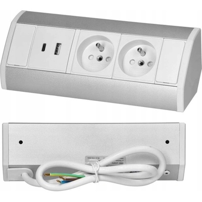 Rohová zásuvka 2x 250V v bílé lesklé barvě s bílými víčky zásuvek, bez přívodního kabelu vhodný pro umístění do kuchyně, konferenčních místností, kanceláří, chatu, chalupu, garáže, apod. Může být namontován vodorovně i svisle a bloky se můžou skládat za sebe i proti...