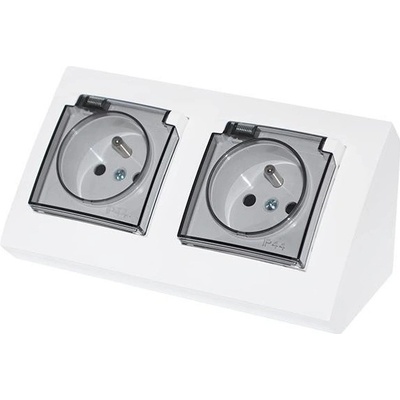 KS-BOX2ZBK-WPV - Rohová zásuvka s průhlednou krytkou IP44 2x 250V, barva lesklá bílá. Je vhodná pro umístění do kuchyně, díky zvýšenému krytí odolá stříkající vodě. Zásuvky lze...