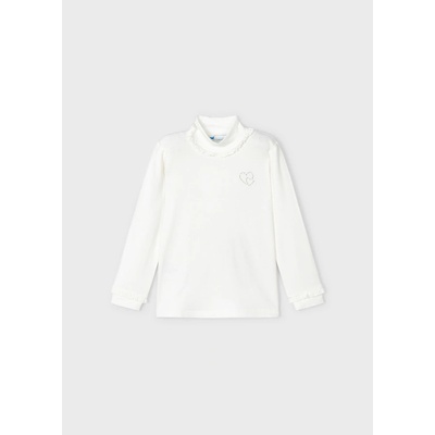 Mayoral dívčí viskózový rolák s decentní aplikací kmínků. Rolák je z opravdu příjemného materiálu, u krku je stojáček s volánkem, n levém prsu je decentní třpytivá aplikace...