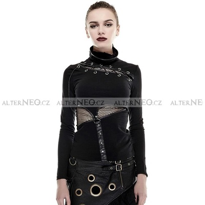 Steampunk /postapo / gothic černé originální triko ke krku s dlouhým rukávem, asymetrickým šněrováním, průhlednými průstřihy a působivými detaily z ekokůže. Rolák je vyroben z...