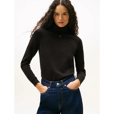 Dámský černý rolák od Tommy Jeans.Materiál:53% bavlna40% viskóza7% polyamidStřih:Regular Fit