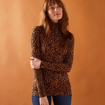 Leopardí potisk kraluje módní scéně a my Vám ho přinášíme na oblíbeném roláku. Ze žerzeje příjemného na nošení. Rolákový límec. Dlouhé rukávy. Rovný dolní lem. Standard 100...