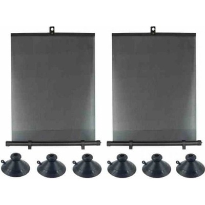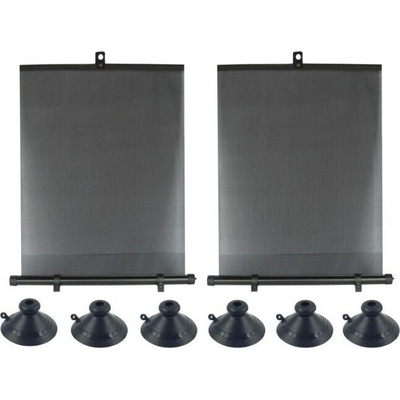 Sada 2 kusů slunečních roletek, určených k použití na oknech automobilu.Způsob perforace materiálu zajišťuje absorpci cca 70 % slunečních paprsků, a zároveň umožňuje viditelnost jak ve dne, tak i v noci. Barva: černá Šířka: 45 cm Délka vytažené clony: 55,5 cm