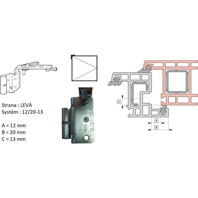 Systém je vyražen na rámové části závěsu z vnitřní strany, viditelné až po demontování pantu a nebo je třeba změřit křídlo a rám viz. tabulka níže.