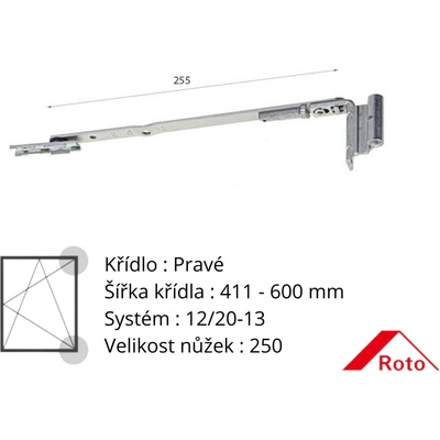 Roto NT rámové nůžky Pravé křídlo 411 - 600 (250) mm 12/20-13 258063