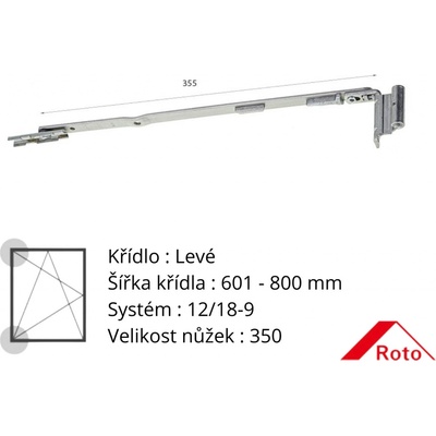 Roto NT rámové nůžky Levé křídlo 601 - 800 (350) mm 12/18-9 258052