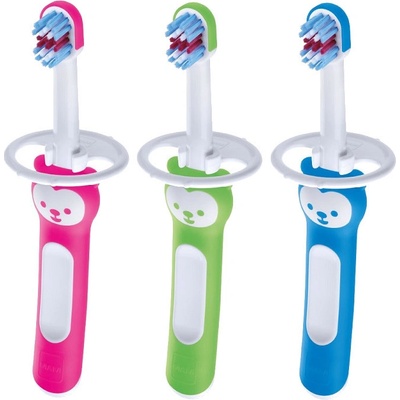 MAM sada zubních kartáčků pro děti již od 6.měsíce + bezpečnostní chránítko. Ve dvou krocích se děti naučí správně a samostatně čistit zoubky. První krok: Training...