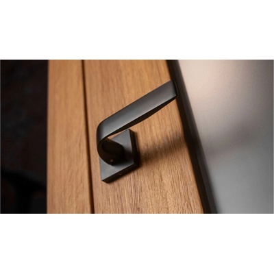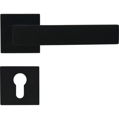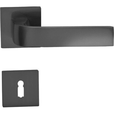 Hliníkové kování RK.C36.GARDA.PZ.NIMAT na čtvercových rozetách s vratnou pružinou klik Dodáváno pro tloušťku dveří 32 – 58 mm Balení vč. spodních rozet (PZ), spojovacího...