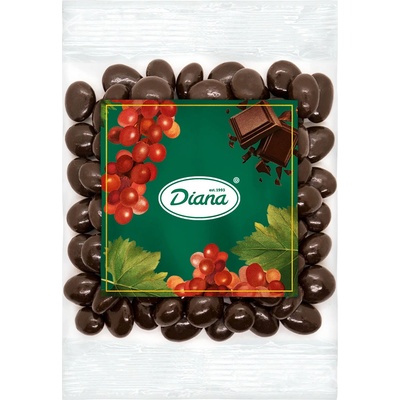 Rozinky máčené v mléčné čokoládě. Složení: Mléčná čokoláda 40% (+/- 5%) - cukr, kakaové máslo, sušené plnotučné mléko, kakaová hmota, rostlinné tuky (palmový olej, olej z...