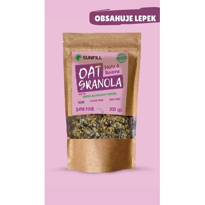 Ovesná GRANOLA "Ořechy & Rozinky", 200 g. Objevte lahodnou granolu plnou kvalitních surovin, která vás nejen zasytí, ale i potěší chuťové buňky. Tato granola je dokonalou...