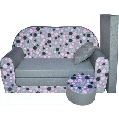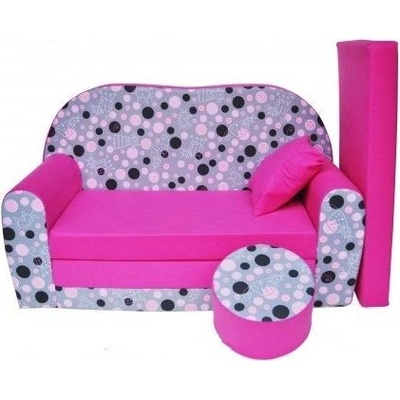 FIMEX Rozkládací dětská pohovka s bobkem a polštářkem Kolečka a Kočičky Růžová